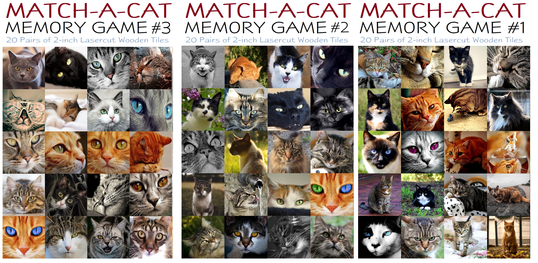 Our handcrafted, lasercut memory matching games come in a wide variety of images and styles.